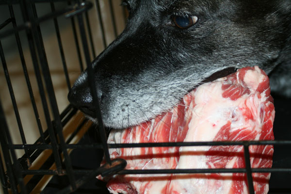Stripping meat from bone helps clean a dog’s teeth.