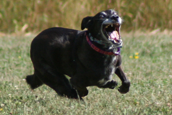 Barking at the lure while running like a crazed maniac.