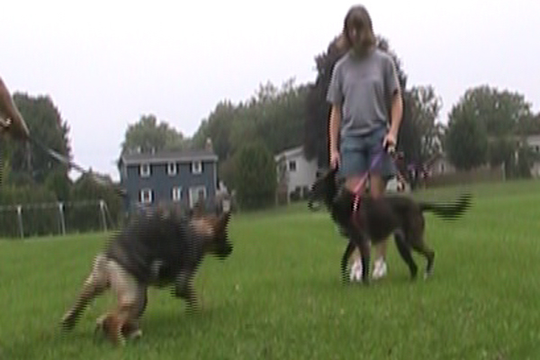 Risa turns her body away from Medo as he lauches himself at her. I waited patiently for Risa to look away, marked it, and rewarded her with distance.