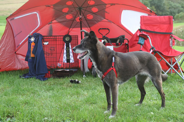 Because it was an outdoor trial, I was able to let Risa hang around outside of her kennel. She really seemed to enjoy just checking things out and being able to have some time with Mom outside the ring.