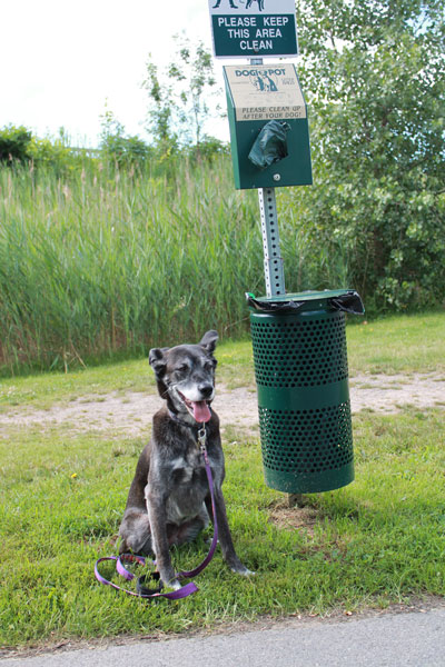 Who takes a picture of their dog next to a poop can? Me. When it proves how far we’ve come. 🙂