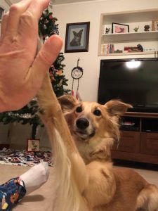 Kyu is not like that. While he can train for longer periods of time, he’s not going to work on the same thing for a half hour. Even if I switch things up and only work on each thing for a short period, he’s still not going to be into the game as much as Risa was. He is also incredibly sensitive to my moods and picks up on my frustration even more readily than Risa did (and she was also very sensitive). I’m also finding he needs things to be very clear or he’s likely to just give up. He doesn’t want to be “wrong” (moreso because of how I respond even though I try my best to make sure he realizes it’s not a big deal) so he will just stop if it’s unclear what I want. Which, of course, is hard for me because I’m human and it feels like my dog doesn’t want to work with me! I can objectively realize that it’s just information that I can use going forward in training. . .but that’s often hard to do in the moment!